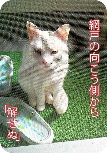 ベランダで不満げな顔になってる理由は閉め出されてるからです。