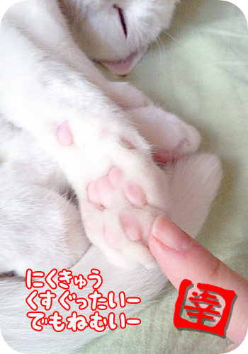 真ん中の、『山』型の肉球の下のあたりがほわっほわで気持ちいいんですよー